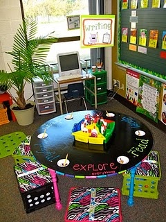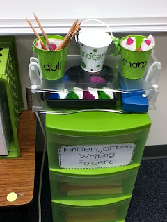 I love this little writing corner! I also love how there is a bucket for erasers!