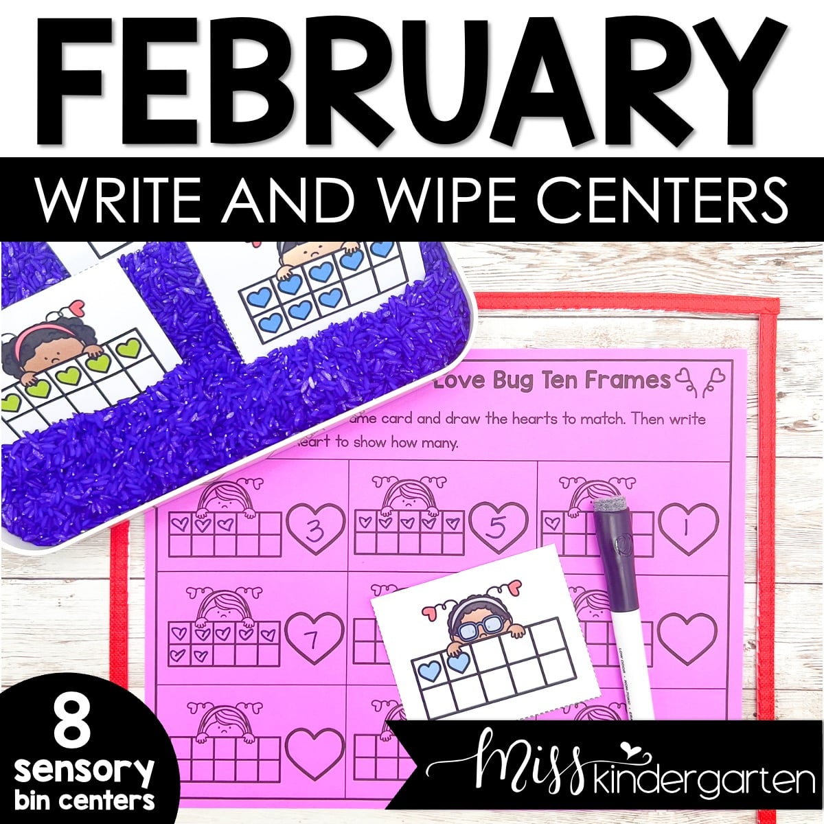February Kindergarten Centers Write and Wipe Activities & Sensory Bins