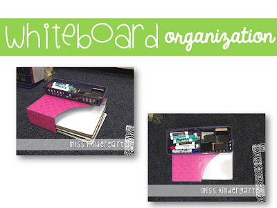 This is one of my all-time favorite organizational ideas that I learned from the sweet Ladybug Teacher! My whiteboards used to be stacked in a little bin, but it was really difficult for my sweeties to reach their fingers in and grab a whiteboard when they needed one. The sideways magazine holder solves that problem, and they’re super cheap! I got that one in the Target dollar section for $1! I just replace it every year which is fun because I actually like change 🙂
